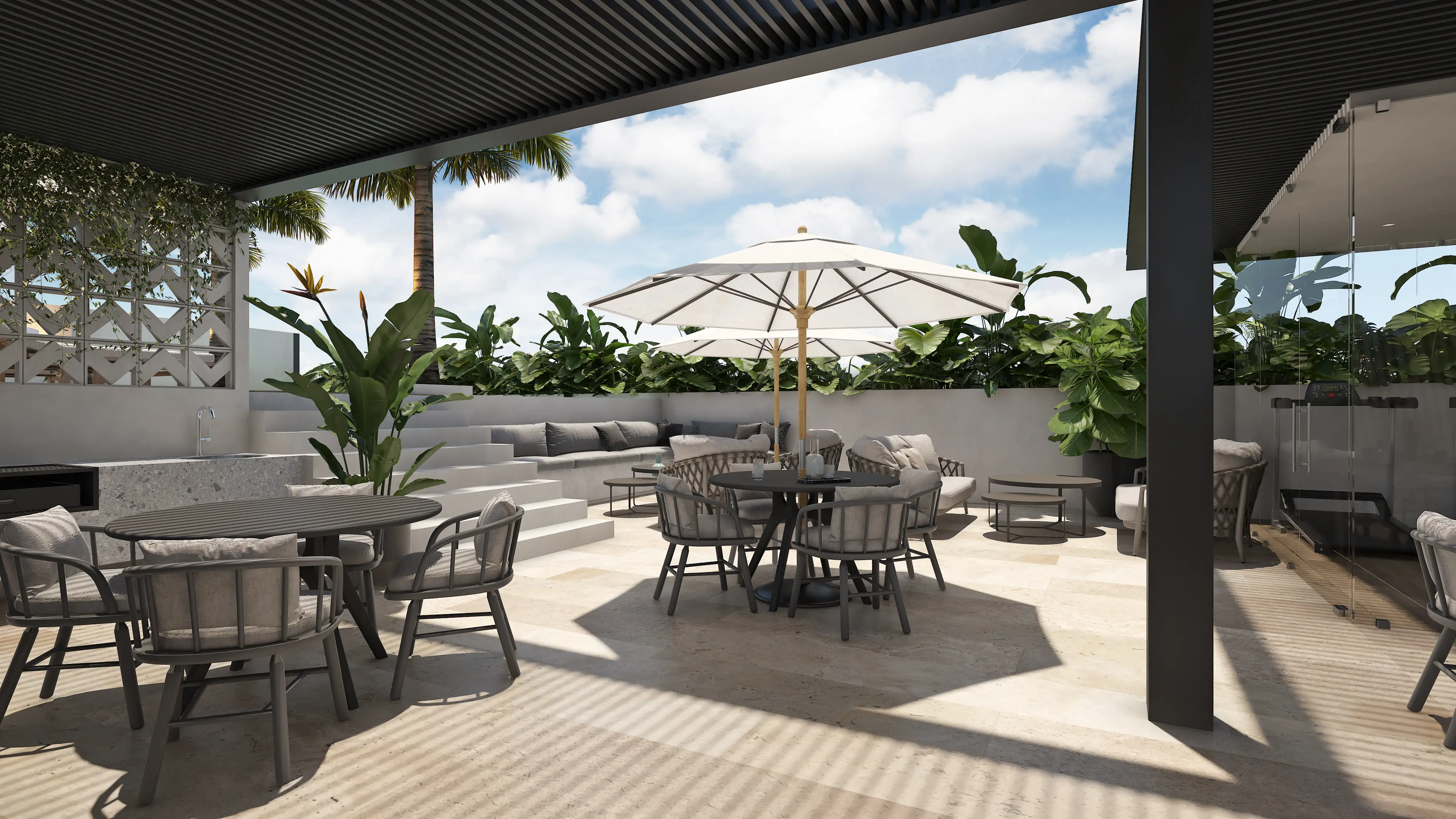 Rooftop con espacios diseñados para descansar, relajarte y disfrutar de momentos únicos al aire libre.
